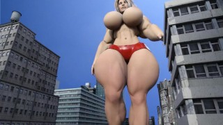 Giantess Carissa wrestlees the teeny man