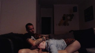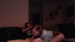 little babygirl submissive puts a show on for Master Daddy and friend