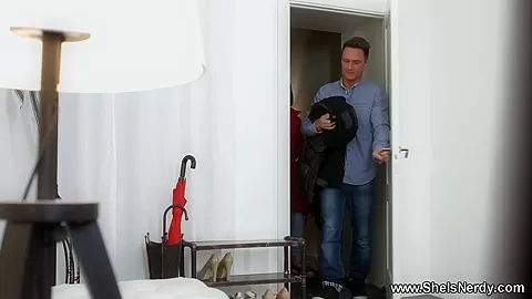 Sexy brunette asks a dude for help with her classes