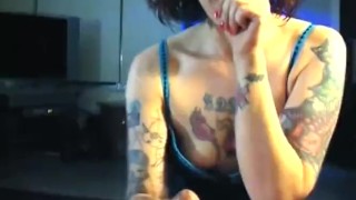 Tattooed whore Lilly Lane sucks you huge cock and takes your load to face